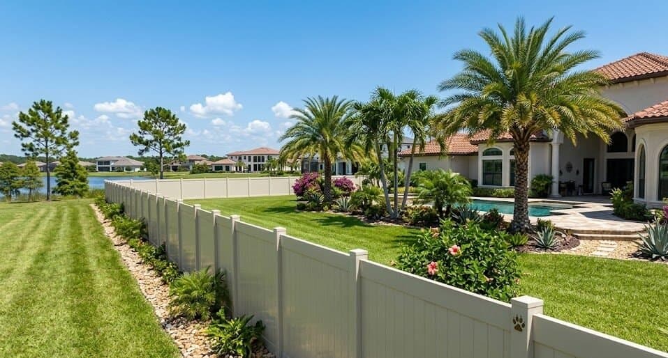 own roughly 70 percent of Oviedo's residential fence volume because the material's operational profile perfectly matches what a Seminole County family with two school-age kids and a golden doodle actually needs from a backyard barrier: total visual blocking, total maintenance avoidance, and enough structural rigidity to survive the afternoon thunderstorm gusts that roll off the Econlockhatchee corridor during wet season. The PVC formulation includes titanium dioxide UV blockers that keep tan and white panels from yellowing or chalking after years of subtropical sun exposure. The boards interlock tongue-into-groove with zero daylight between them. And the factory-welded aluminum spines inside each post counteract the bending force that a six-foot panel face generates when a 40-mph gust treats it like a sail.