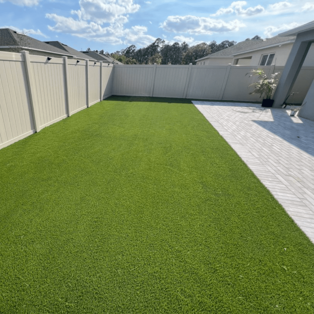 Florida’s unique climate—humid summers, heavy rains, and hurricane season—creates special challenges for outdoor spaces. Natural grass struggles with fungus, water restrictions, and constant mowing. Fences must be built strong enough to handle storms. Pavers must resist shifting from frequent rain and sandy soil.