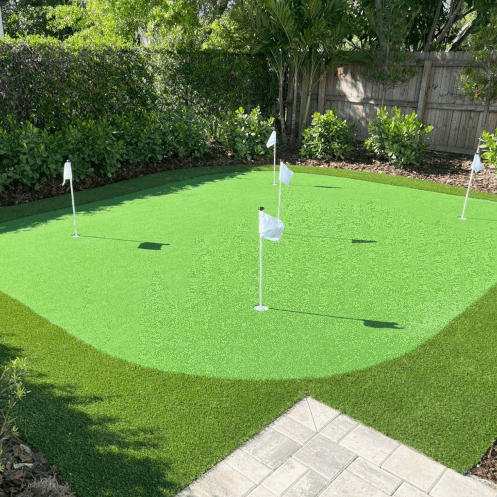 Putting greens are a fun addition that a few Winter Ridge homeowners have gone with, and the results speak for themselves. A backyard putting green uses a short-cut turf with a denser pile that rolls like a real golf green. We build them with contoured sub-bases that create gentle breaks and slopes, so you’re actually practicing real putting rather than hitting on a flat mat. The greens can be as simple as a 10-by-15-foot pad or as elaborate as a multi-hole course with fringe turf surrounding it. For golf enthusiasts in a community that sits between some of Polk County’s best courses, it’s a feature that gets used almost daily once it’s in.